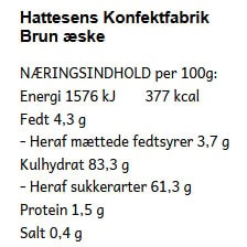 Indhold i “Hattesens Konfektfabrik, Brun æske, 125g”: