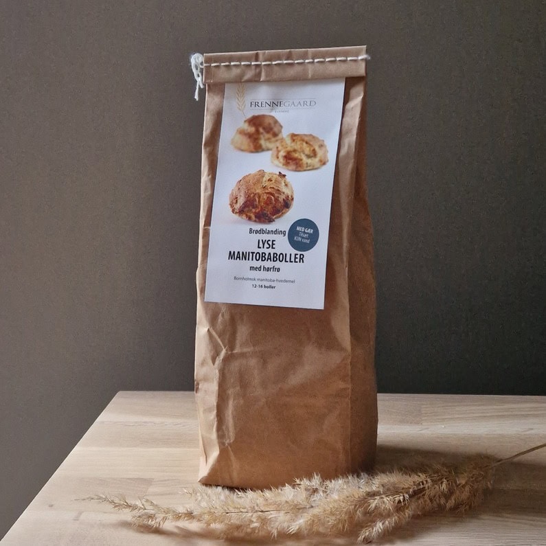 Prøv en brødblanding med Manitoba hvede, dyrket på Bornholm, og lad duften af nybagte boller brede sig i hjemmet næste morgen.